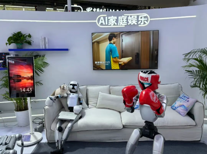 不仅如此,面向AI终端创新这一前沿话题,中国电信AI应用生态终端合作展区也展示了在具身智能这一新兴赛道进行技术探索与场景延伸。AI机器人系列产品深度赋能工业巡检、仓储物流、智慧办公等场景,拓宽了智能终端赋能实体经济的边界。